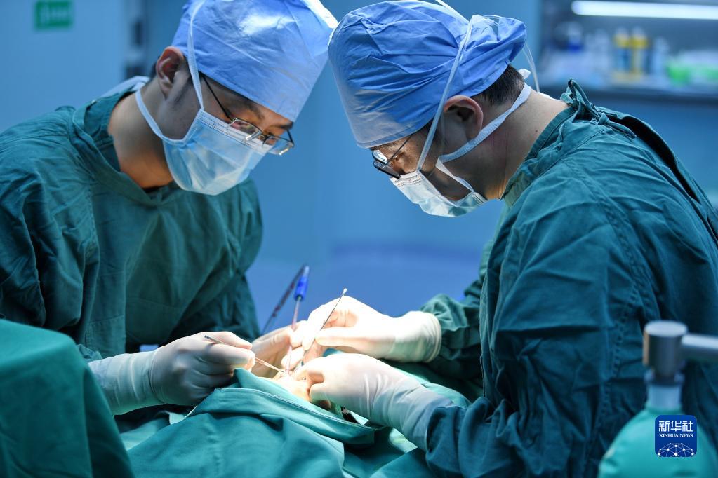 7月29日,在阿裏地區人民醫院手術室,醫生為(wei) 唇齶裂患者做修複手術。新華社記者 張汝鋒 攝