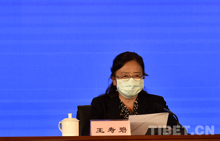 圖為(wei) 西藏自治區新型冠狀病毒肺炎疫情防控工作第三場新聞發布會(hui) 上,西藏自治區衛生健康委員會(hui) 一級巡視員王壽碧介紹西藏新冠肺炎疫情防控工作最新情況 攝影:王媛媛