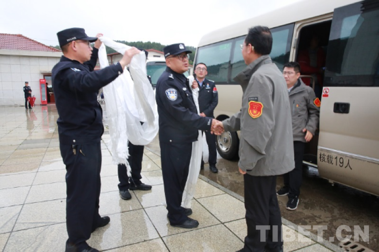 圖為(wei) 吉隆出入境邊防檢查站民警歡迎醫療專(zhuan) 家的到來