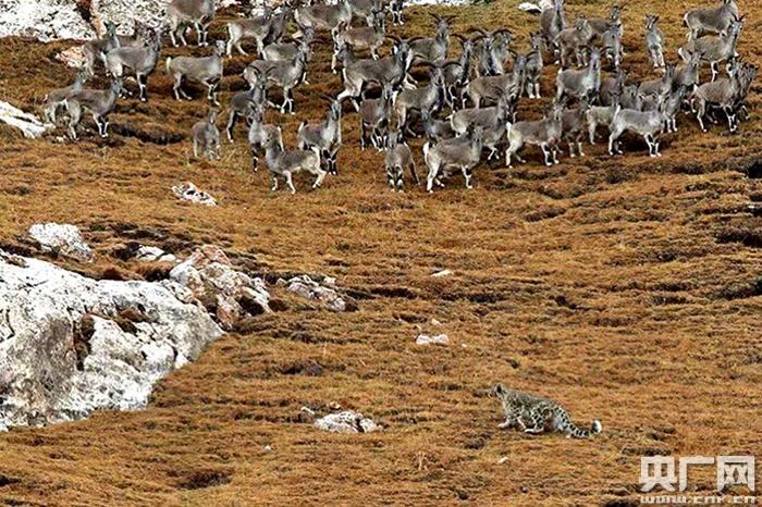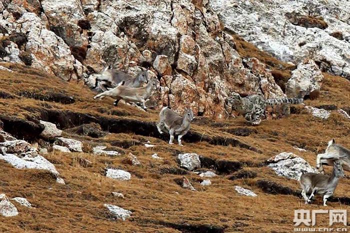 雪豹向岩羊群發起攻擊。央廣網發 馮(feng) 剛 攝