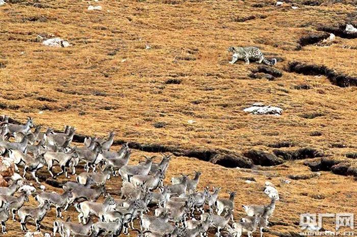 雪豹向岩羊群逼近。央廣網發 馮(feng) 剛 攝