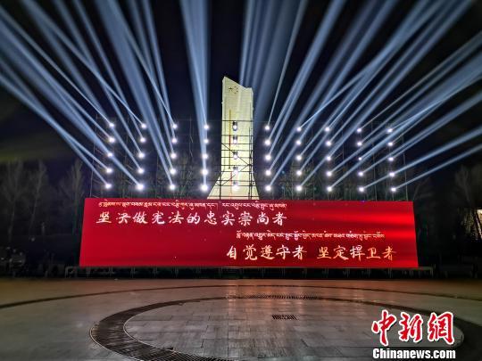 圖為(wei) 12月3日晚,一場美輪美奐的“法治燈光秀”在拉薩布宮廣場拉開序幕。 張偉(wei) 攝