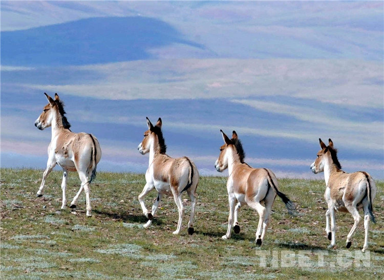 西藏羌塘國家級自然保護區內(nei) 的藏野驢(4月29日攝)。新華社記者 田金文 攝