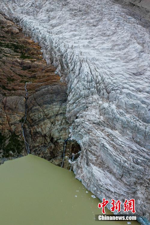 約雄冰川位於(yu) 西藏自治區那曲市巴青縣境內(nei) ,從(cong) 空中俯瞰,巨大的冰川宛若一條巨龍,從(cong) 6328米高的布加雪山峰頂傾(qing) 瀉奔下,形成懸冰川體(ti) ,蔚為(wei) 壯觀。圖為(wei) 約雄冰川融水形成的約雄措。 何蓬磊 攝