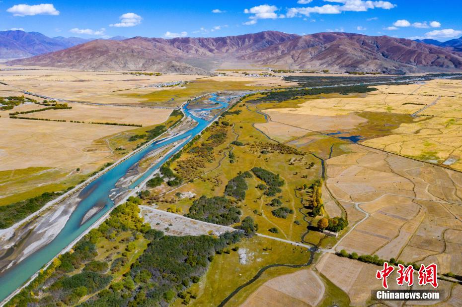 10月下旬,地處西藏自治區西南部的日喀則更添秋意,這裏平均海拔4000米以上,是西藏主要的糧食產(chan) 區,素有“西藏糧倉(cang) ”的美譽。在深秋的日喀則年楚河兩(liang) 岸一望無際的河穀中,片片金黃間雜綠色、紅色、紫色,如畫一般,讓人陶醉。何蓬磊 攝