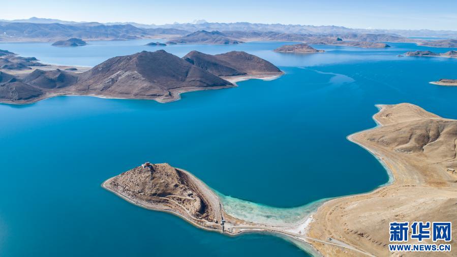 這是1月10日拍攝的羊卓雍錯景色(無人機照片)。新華社記者 孫非 攝