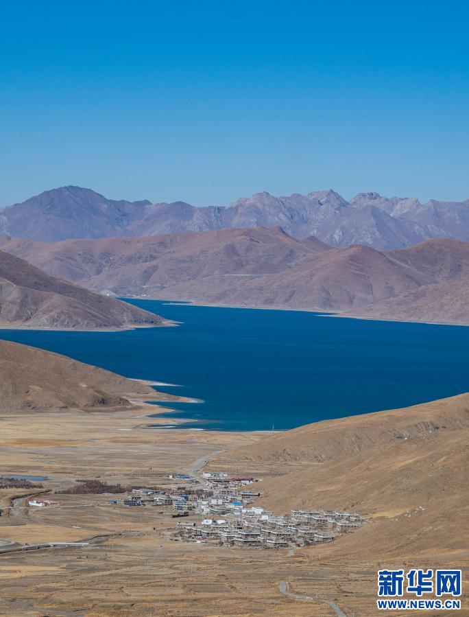 這是1月10日拍攝的羊卓雍錯湖邊的村莊。新華社記者 孫非 攝