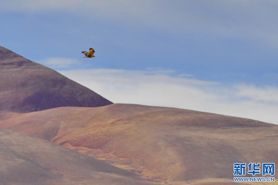 一隻紅隼在藏北高原上飛翔(1月16日攝)。新華社記者 張汝鋒 攝