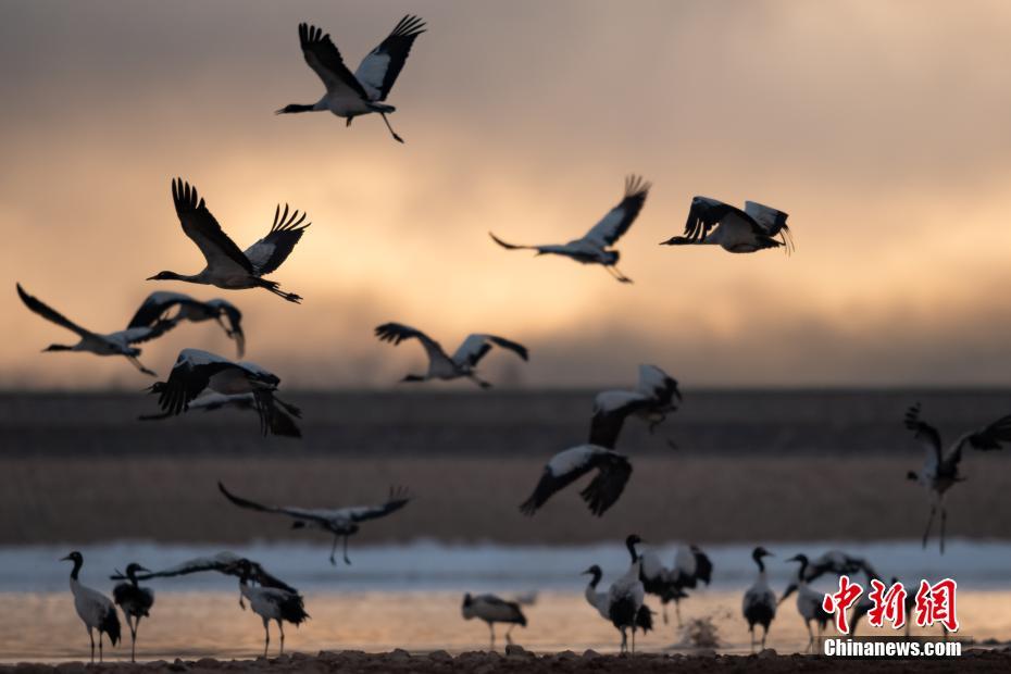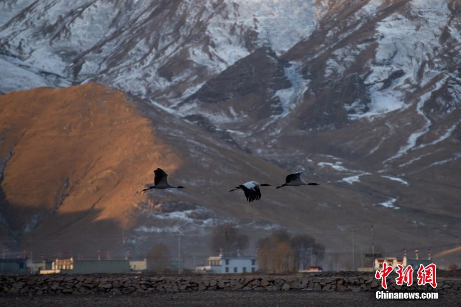 2月17日,西藏拉薩市林周縣黑頸鶴保護區內(nei) ,黑頸鶴翩躚起舞、分外美麗(li) 。中新社記者 何蓬磊 攝