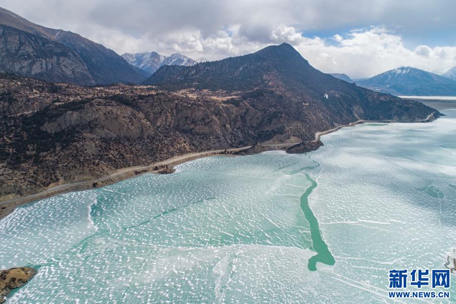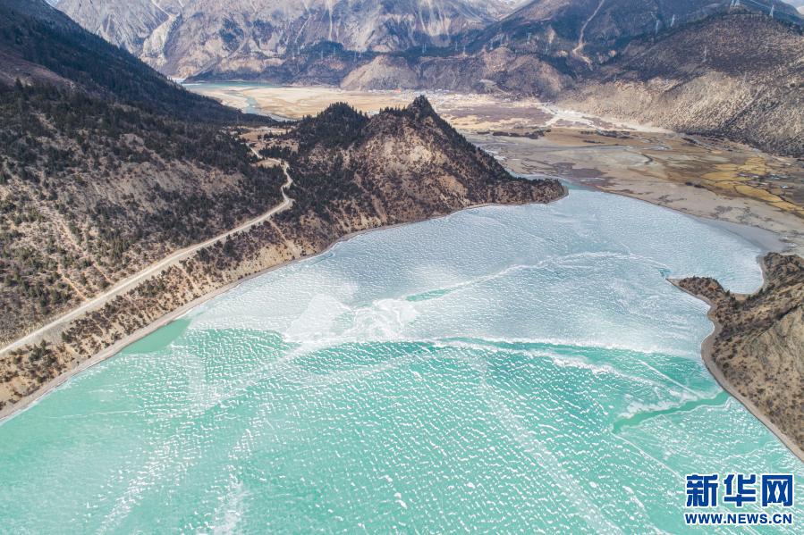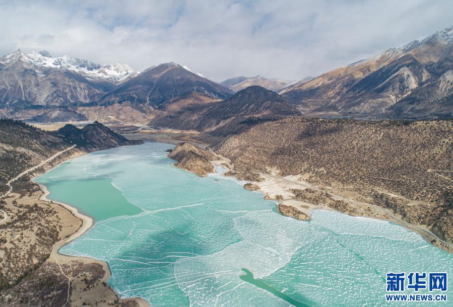 這是2月16日拍攝的然烏(wu) 湖(無人機照片)。新華社記者 孫非 攝