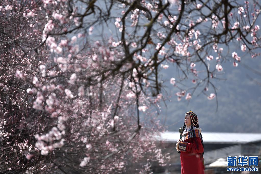 3月28日,一名遊客在西藏林芝市索鬆村觀賞桃花。新華社記者 孫瑞博 攝