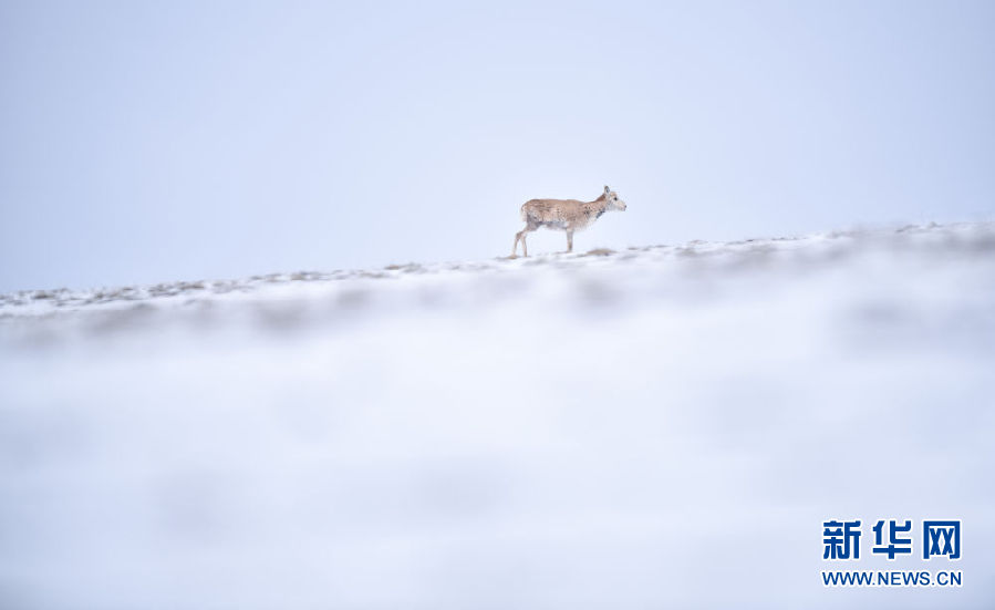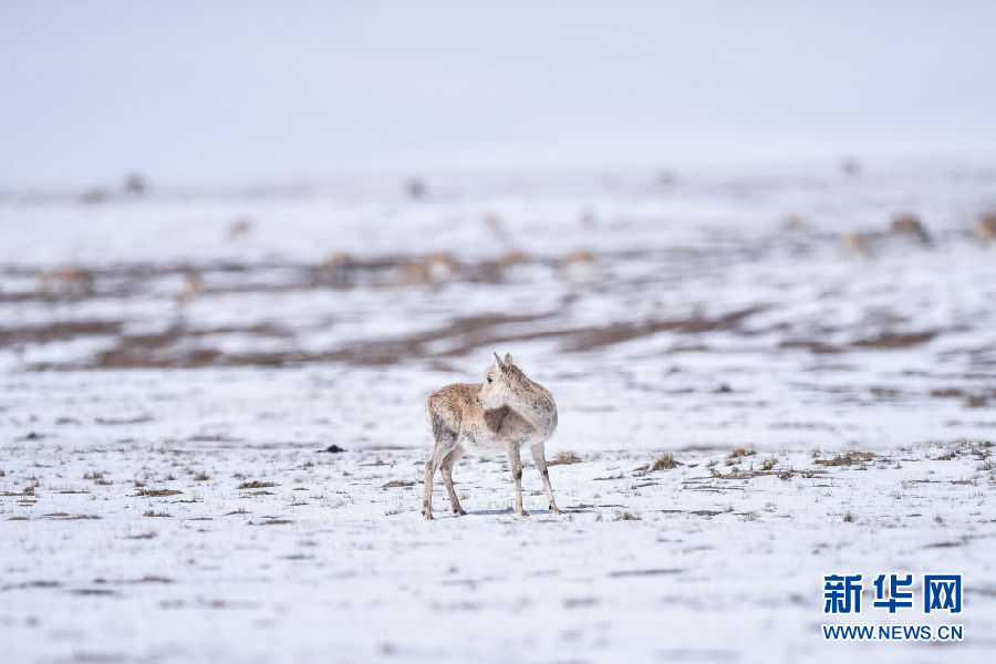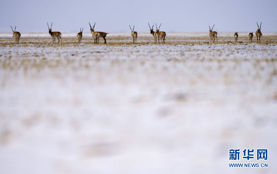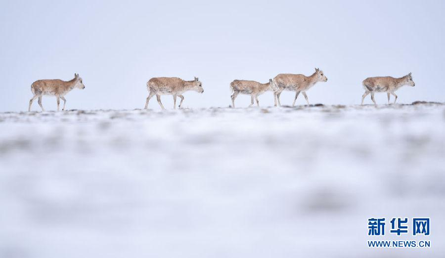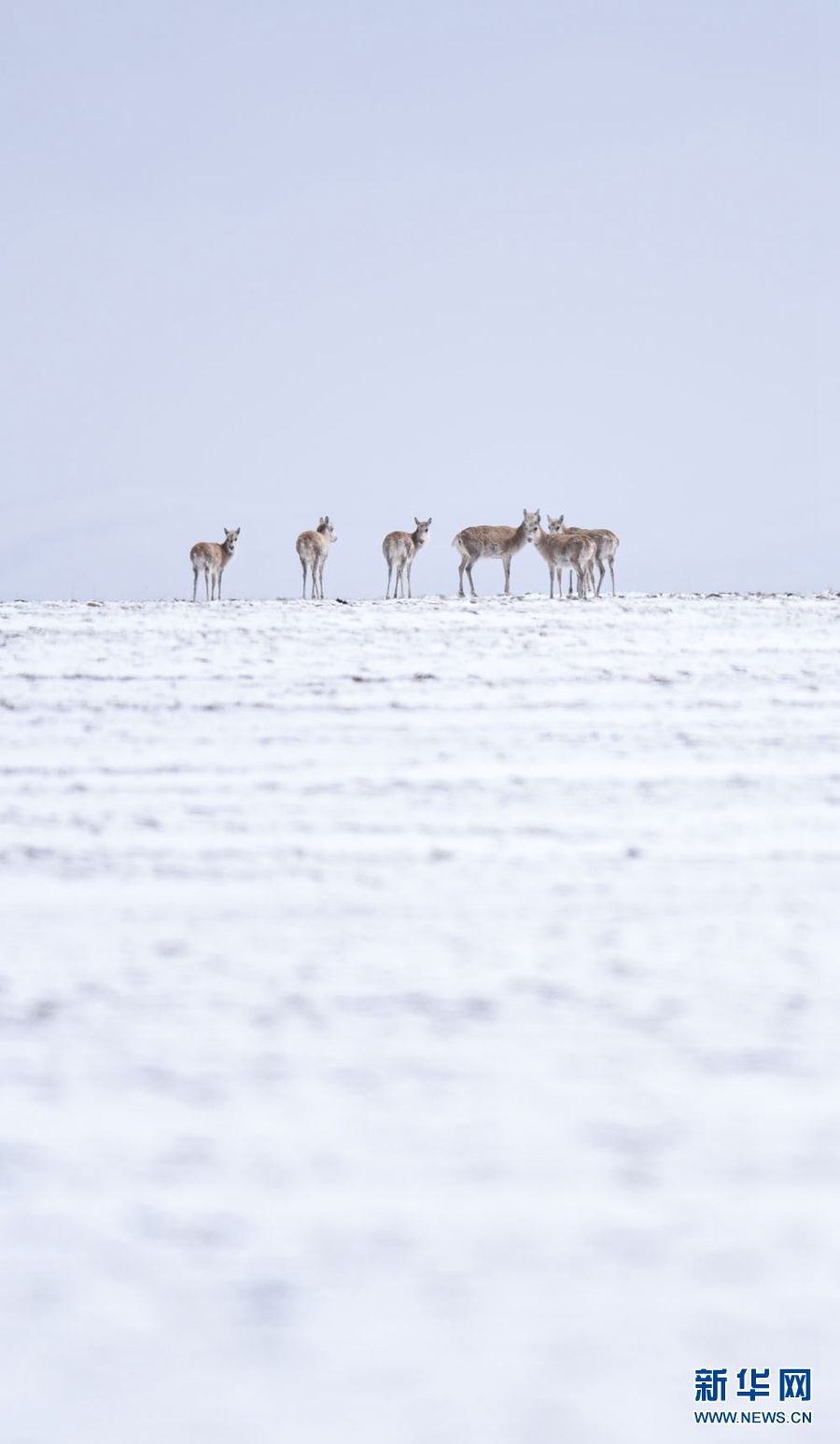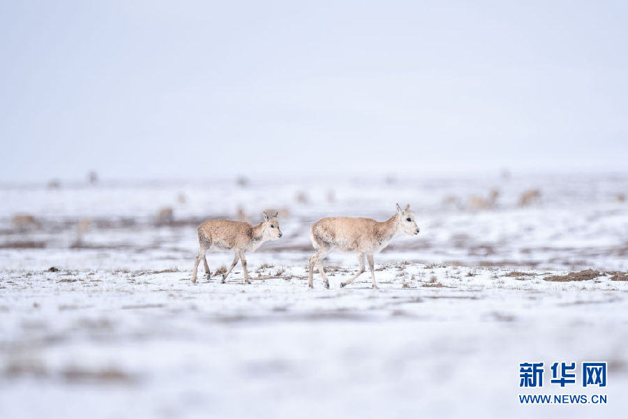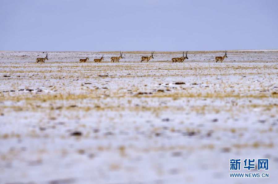 近日,可可西裏迎來降雪,大量藏羚羊匯聚在可可西裏五道梁地區,踏上遷徙之路。