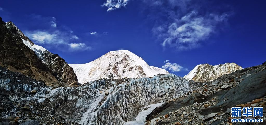 窮母崗日峰海拔7048米,位於(yu) 西藏自治區中部的尼木縣境內(nei) 。窮母崗日峰腳下存有大麵積冰川,形成壯麗(li) 的冰川地貌,在陽光的照射下發出瑰麗(li) 的光彩。