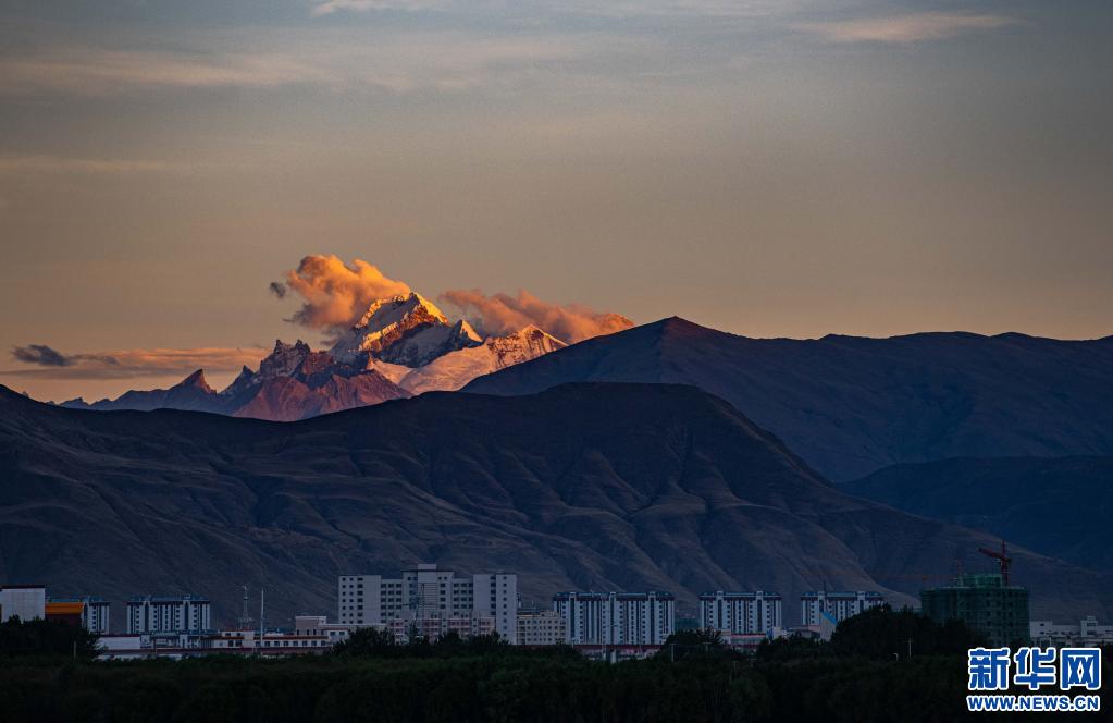 從(cong) 山南市澤當鎮遠眺雅拉香布雪山(6月2日攝)。新華社記者 普布紮西 攝