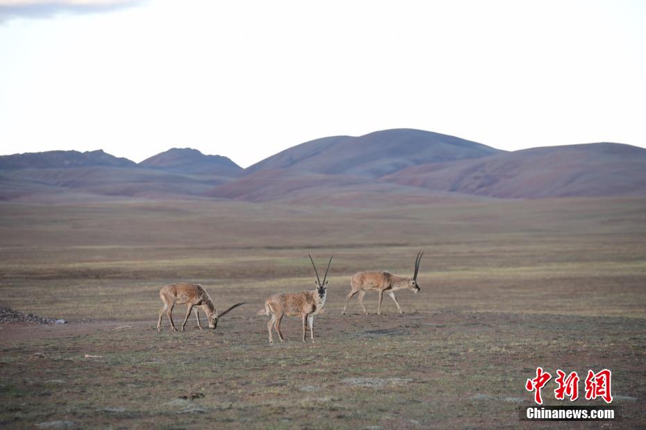 圖為(wei) 西藏自治區那曲市雙湖縣境內(nei) 的藏羚羊。貢嘎來鬆 攝