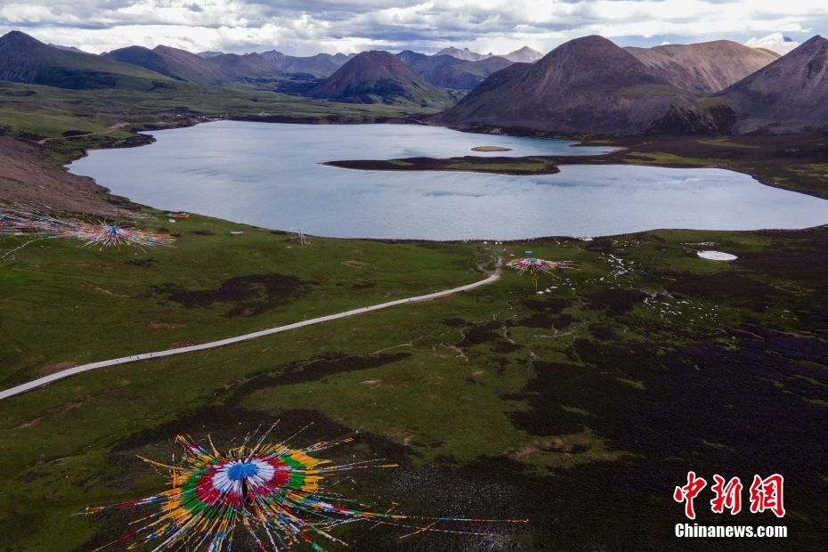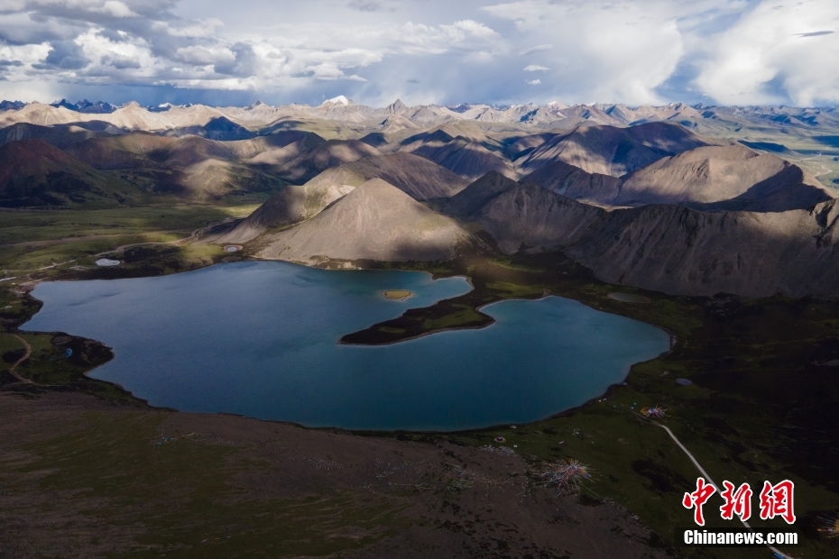 6月23日,思金拉措湖風光秀麗(li) 。思金拉措位於(yu) 西藏墨竹工卡縣日多鄉(xiang) ,海拔4500多米,周邊群峰簇擁,地形猶如聚寶盤,不少民眾(zhong) 將其稱為(wei) 西藏的“財神湖”。(無人機照片) 中新社記者 江飛波 攝