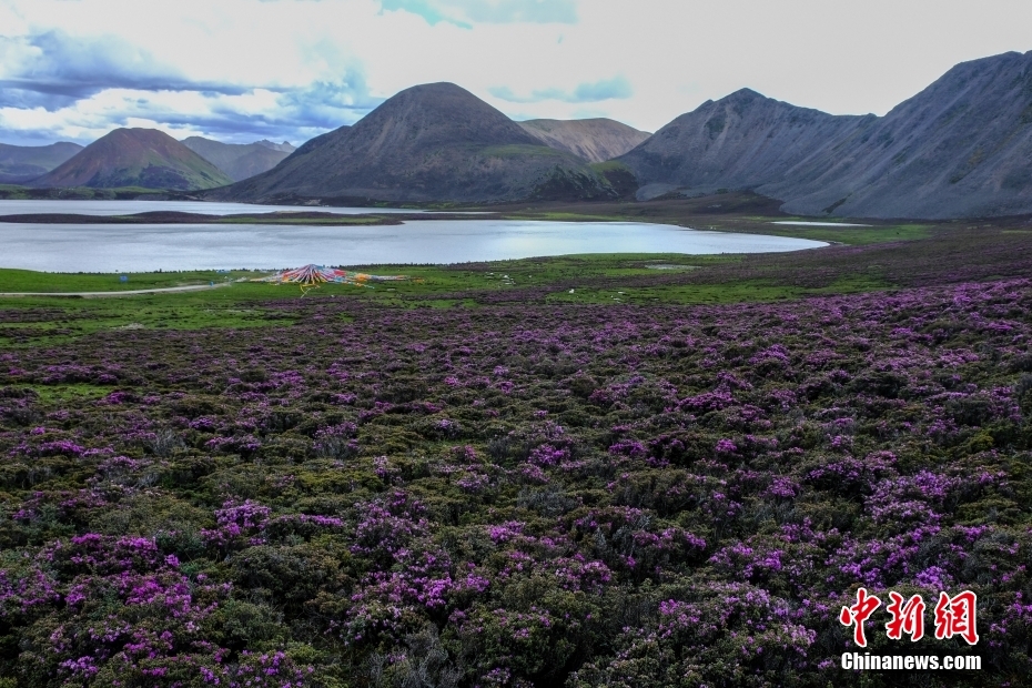 6月23日,思金拉措湖畔紫色鮮花盛開,景色秀麗(li) 。思金拉措位於(yu) 西藏墨竹工卡縣日多鄉(xiang) ,海拔4500多米,周邊群峰簇擁,地形猶如聚寶盤,不少民眾(zhong) 將其稱為(wei) 西藏的“財神湖”。 中新社記者 江飛波 攝