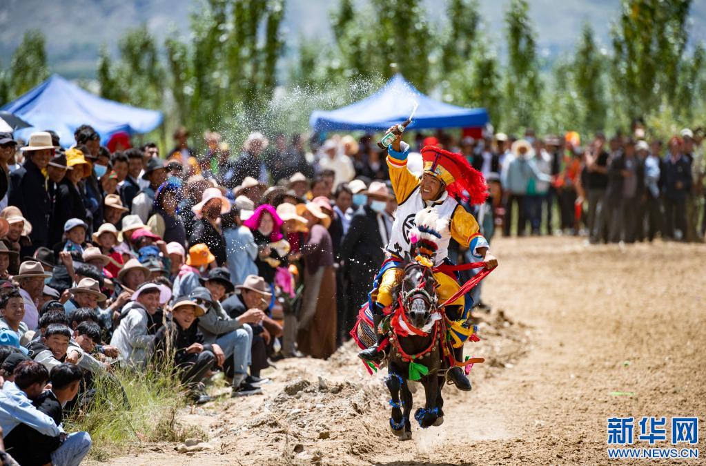當日,位於(yu) 雅魯藏布江畔山穀裏的西藏山南市貢嘎縣昌果鄉(xiang) 崗旦村舉(ju) 行一年一度的賽馬,迎接即將到來的收獲季節。