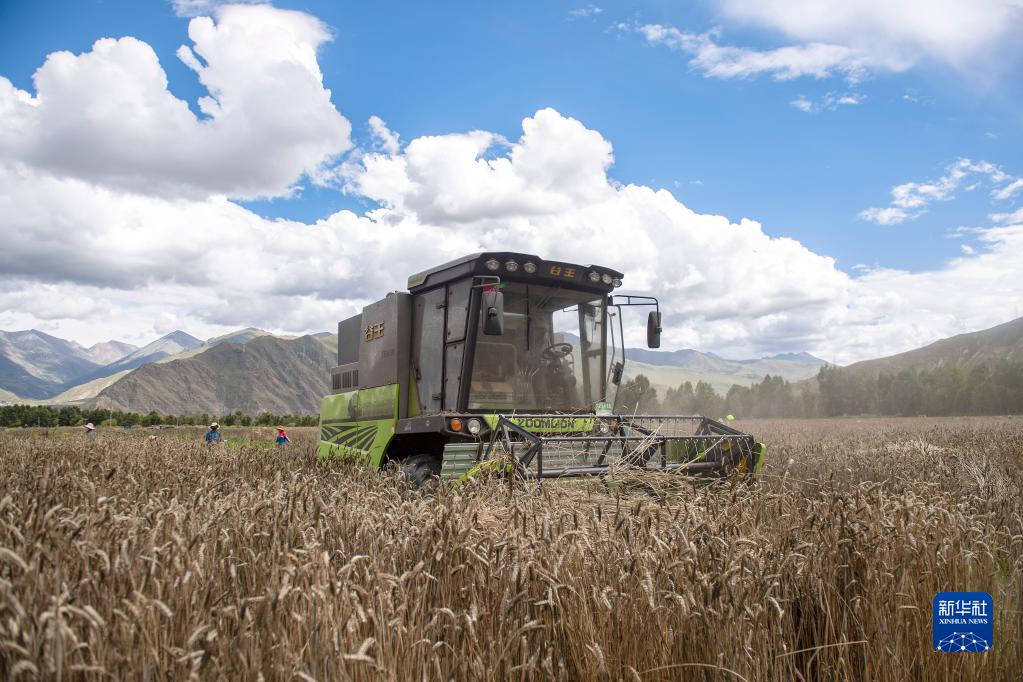 拉薩市達孜區克日村的農(nong) 民用農(nong) 業(ye) 機械收割青稞(9月6日攝)。新華社記者 孫瑞博 攝