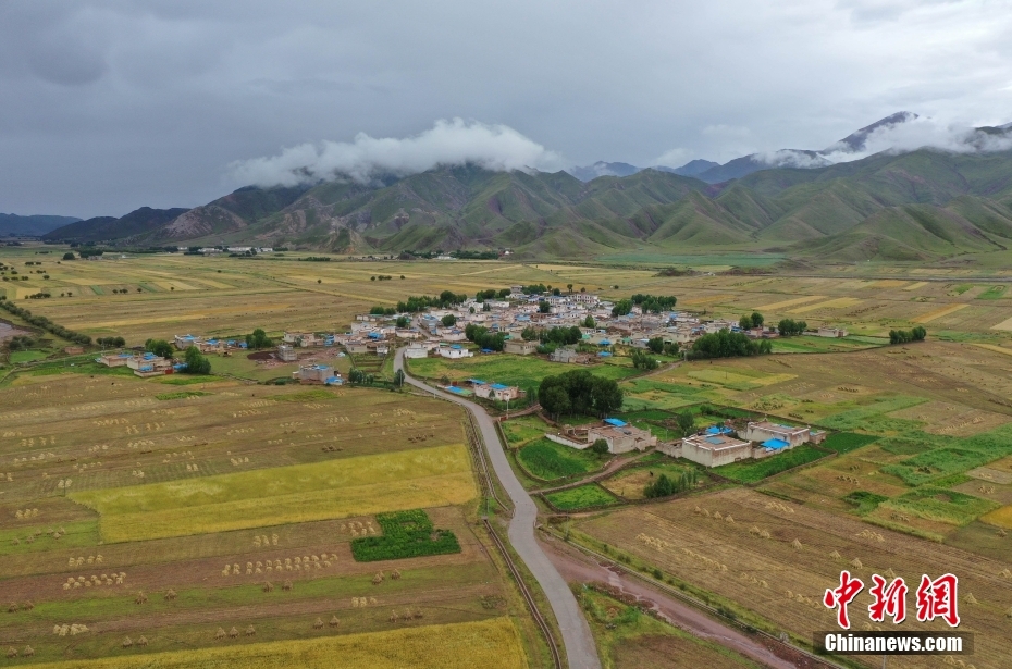 9月8日,西藏自治區拉薩市林周縣境內(nei) 的田野美景。金秋時節,拉薩河穀一帶青稞成熟,呈現豐(feng) 收美景。(無人機照片)中新社記者 貢嘎來鬆 攝
