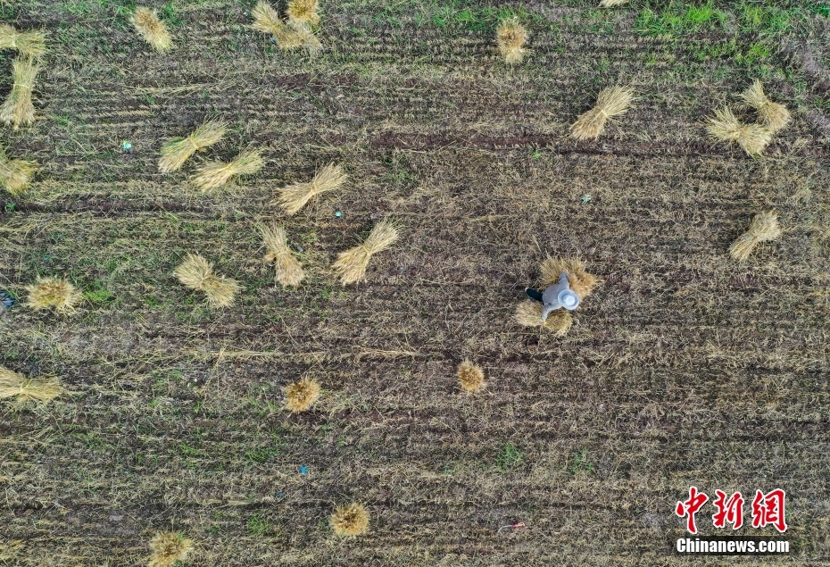 9月8日,西藏自治區拉薩市達孜區境內(nei) 的農(nong) 民在搶收青稞。金秋時節,拉薩河穀一帶青稞成熟,農(nong) 民在青稞田忙碌,一片繁忙景象。(無人機照片) 中新社記者 貢嘎來鬆 攝