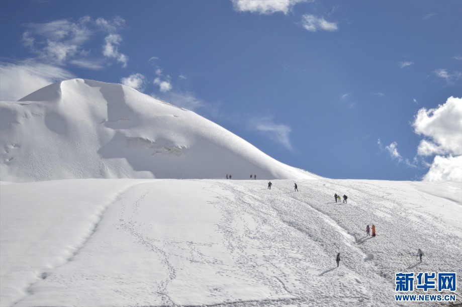 圖為(wei) 遊客攀爬廓瓊崗日冰川(9月14日攝)。新華網 貢桑央吉 攝(實習(xi) 生)