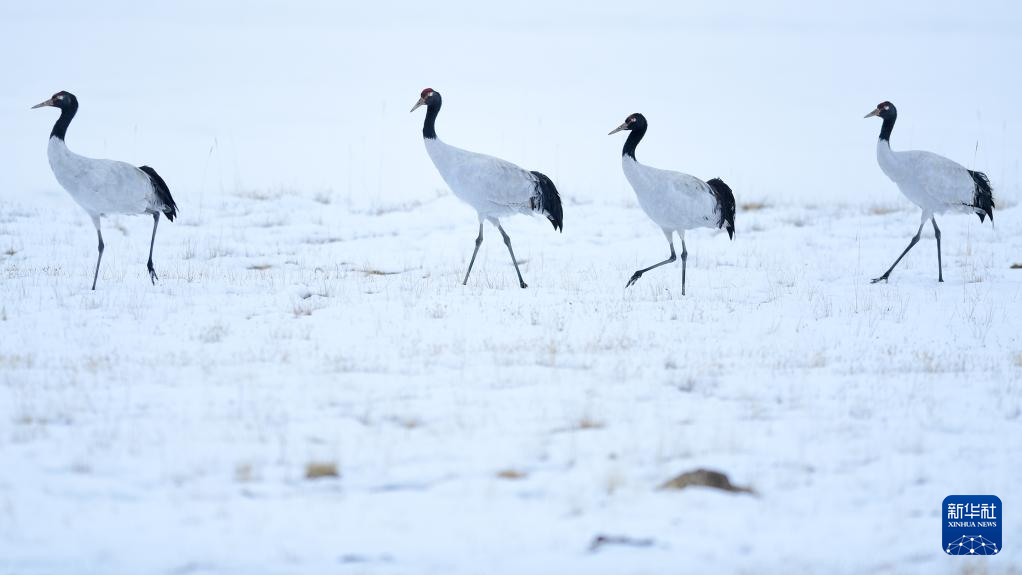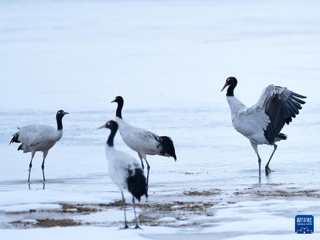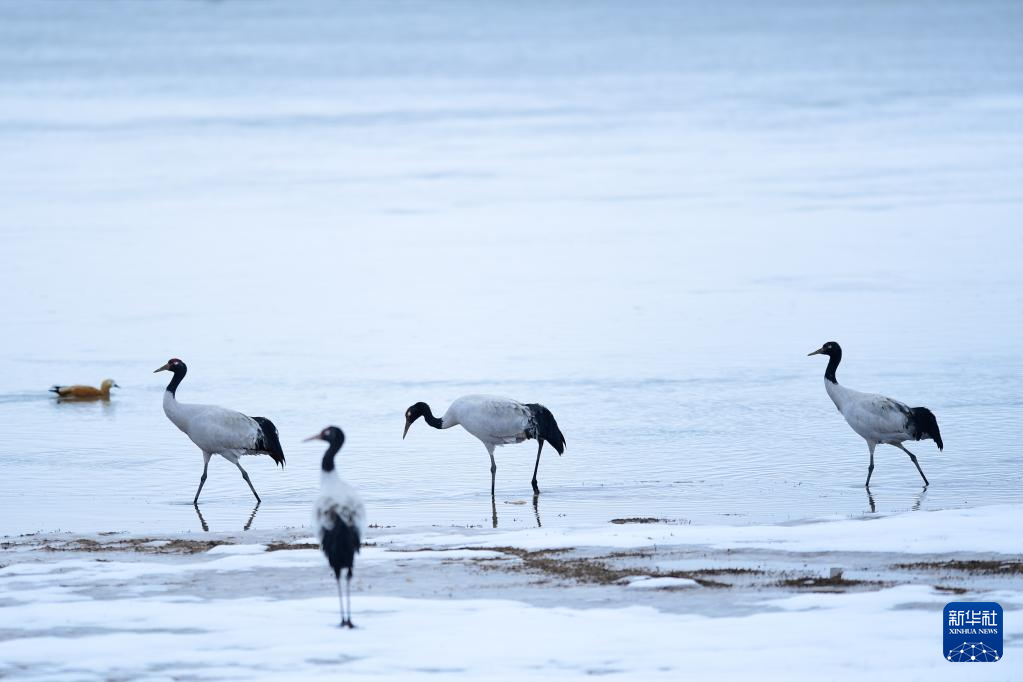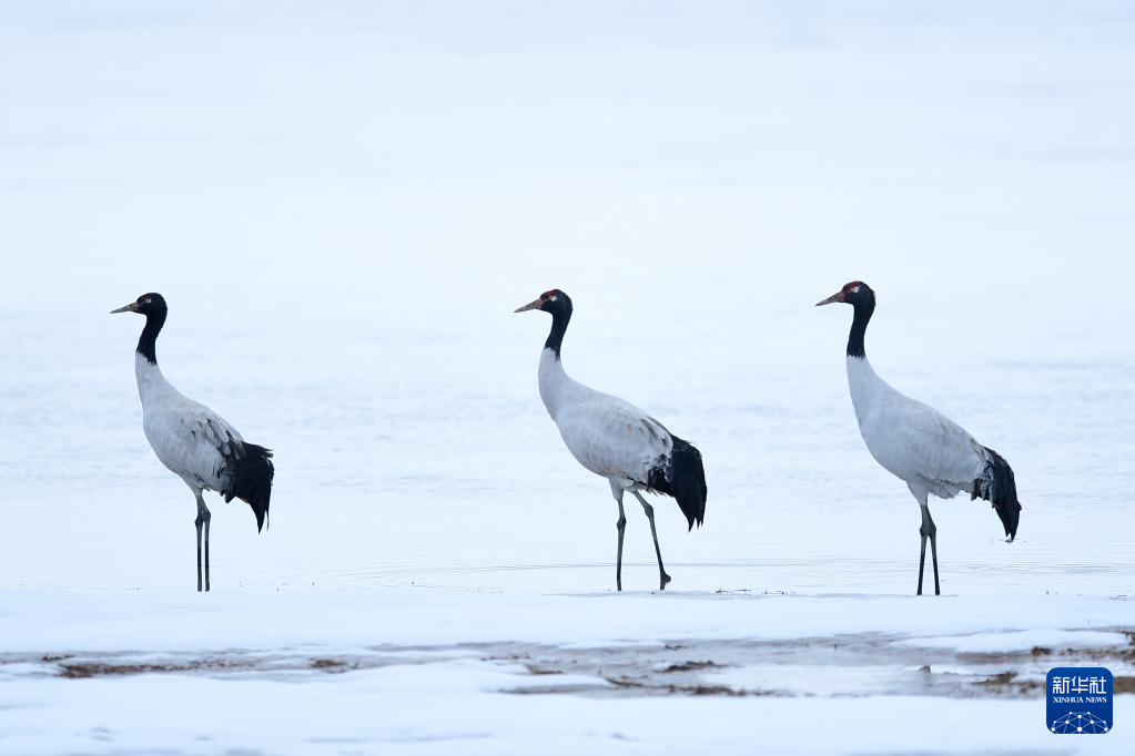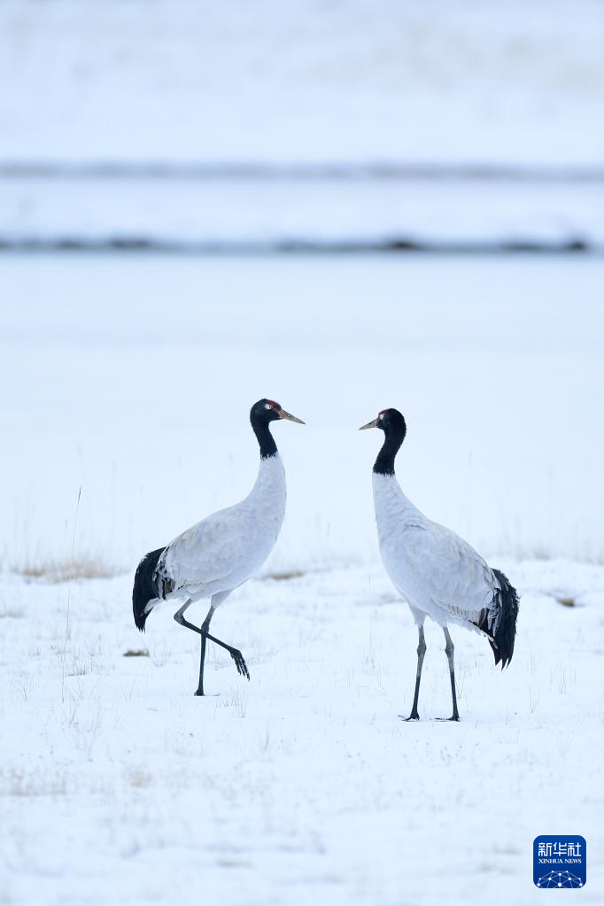 10月21日在三江源國家公園黃河源園區內(nei) 拍攝的黑頸鶴。新華社記者 張龍 攝