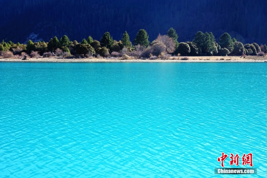 12月2日,巴鬆措湖水綠如翡翠,清澈透亮,美不勝收。巴鬆措位於(yu) 西藏林芝,是西藏海拔最低的大湖。 中新社記者 冉文娟 攝