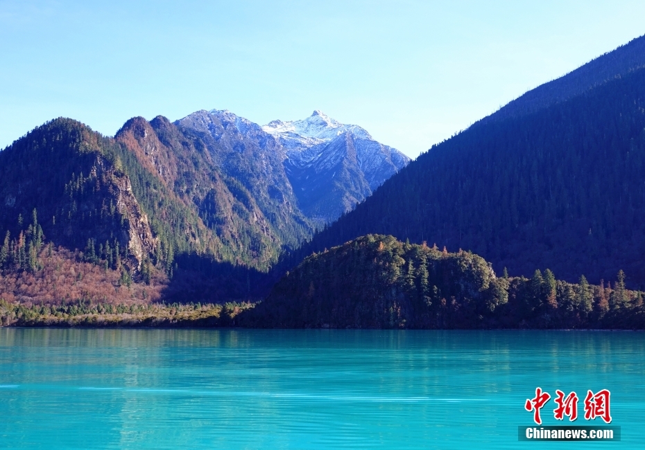 12月2日,巴鬆措湖水綠如翡翠,清澈透亮,雪山和樹木倒映其中,美不勝收。巴鬆措位於(yu) 西藏林芝,是西藏海拔最低的大湖。 中新社記者 冉文娟 攝