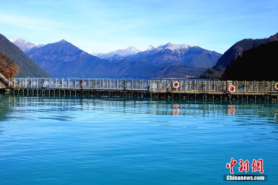 這是在林周縣虎頭山水庫拍攝的黑頸鶴(12月7日攝)。新華社記者 張汝鋒 攝