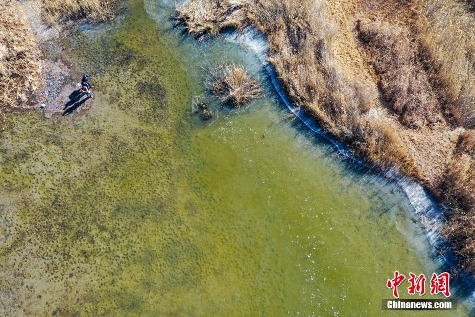 12月21日,西藏自治區拉薩市曲水縣茶巴朗濕地冬日風景。(無人機照片) 中新社記者 貢嘎來鬆 攝
