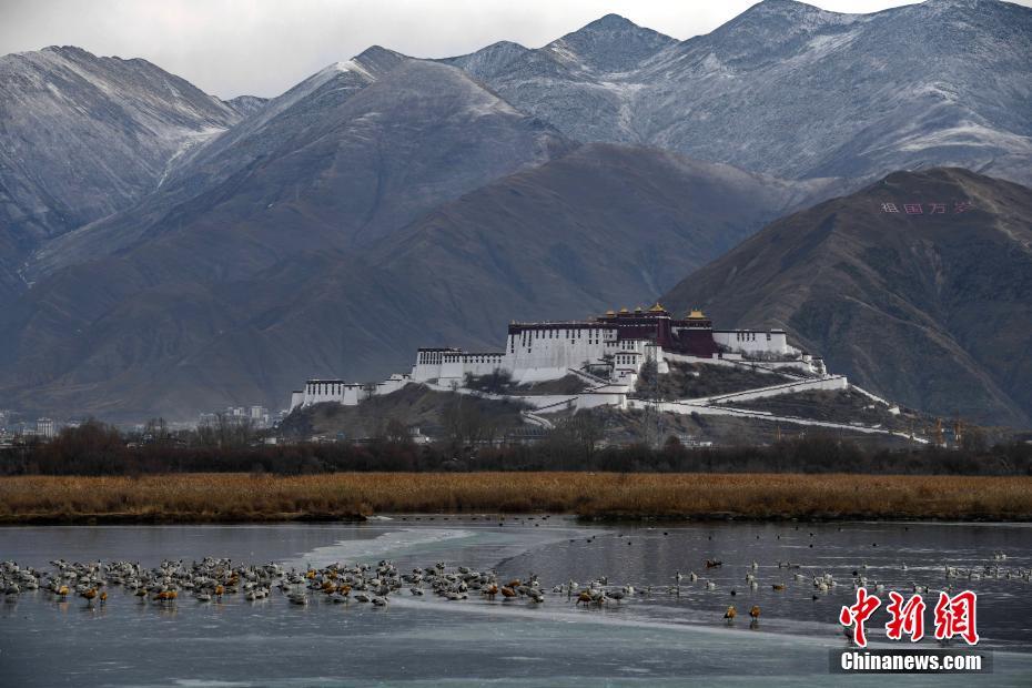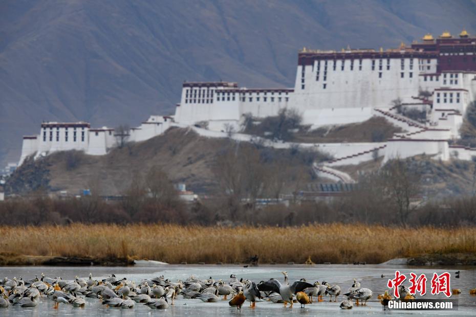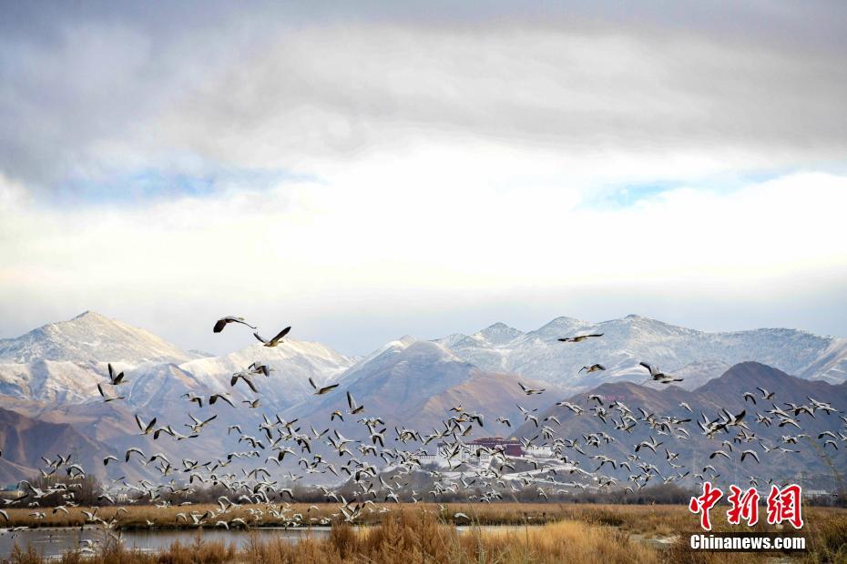 12月24日,拉魯濕地,越冬的候鳥成群結隊。嚴(yan) 冬時節,西藏自治區拉薩市的拉魯濕地國家級自然保護區成了候鳥越冬的樂(le) 園。 中新社記者 貢嘎來鬆 攝