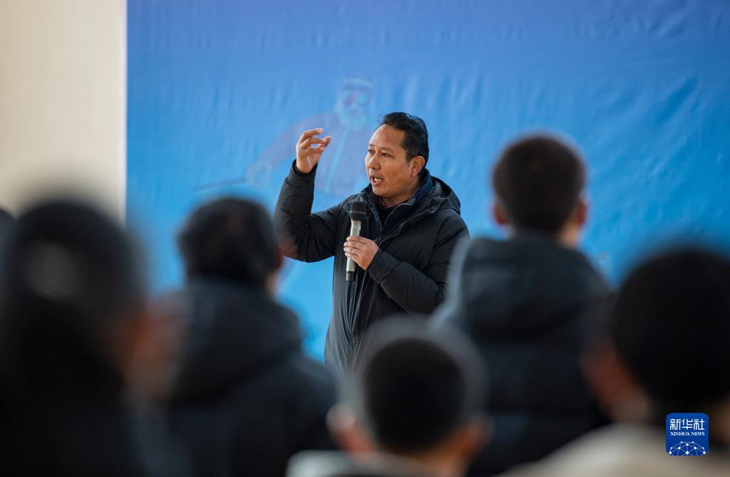 12月30日,西藏自治區體(ti) 育局局長尼瑪次仁在國家體(ti) 育總局“大心髒計劃”西藏自治區訓練營開營儀(yi) 式現場,向學員們(men) 介紹訓練營情況。新華社記者 孫非 攝