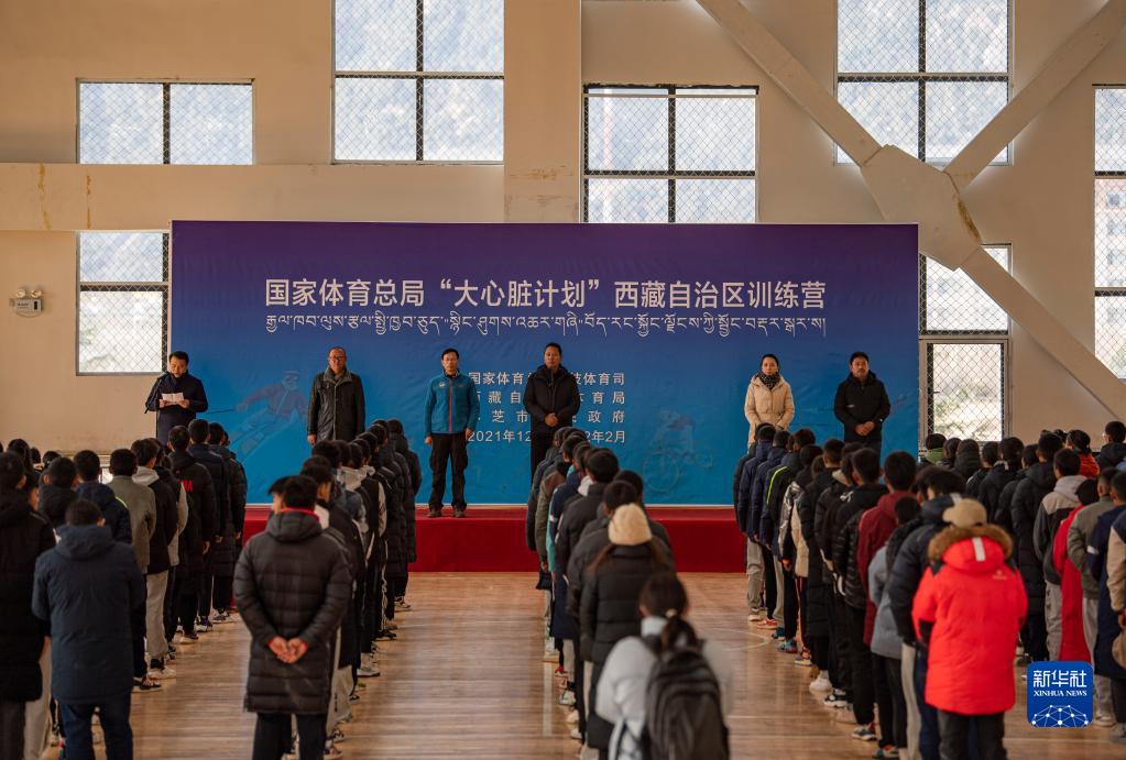 這是國家體(ti) 育總局“大心髒計劃”西藏自治區訓練營開營儀(yi) 式現場(12月30日攝)。新華社記者 孫非 攝