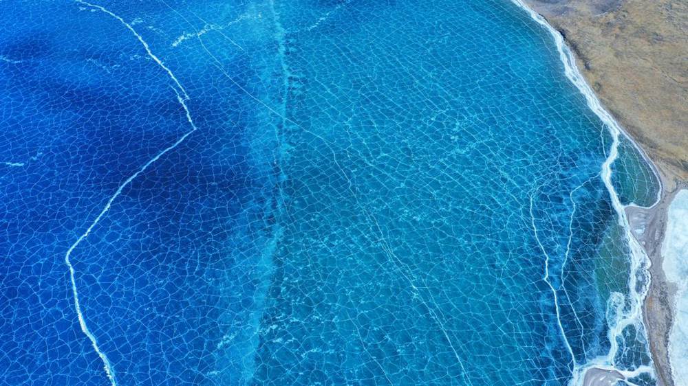位於(yu) 西藏山南市洛紮縣和浪卡子縣交界處的普莫雍錯,是喜馬拉雅山脈間的一個(ge) 鹹水湖,湖麵海拔5070m。冬季的普莫雍錯湖麵會(hui) 結冰,冰麵通透可見湖底,在陽光的照射下,呈現出動人心魄的藍。