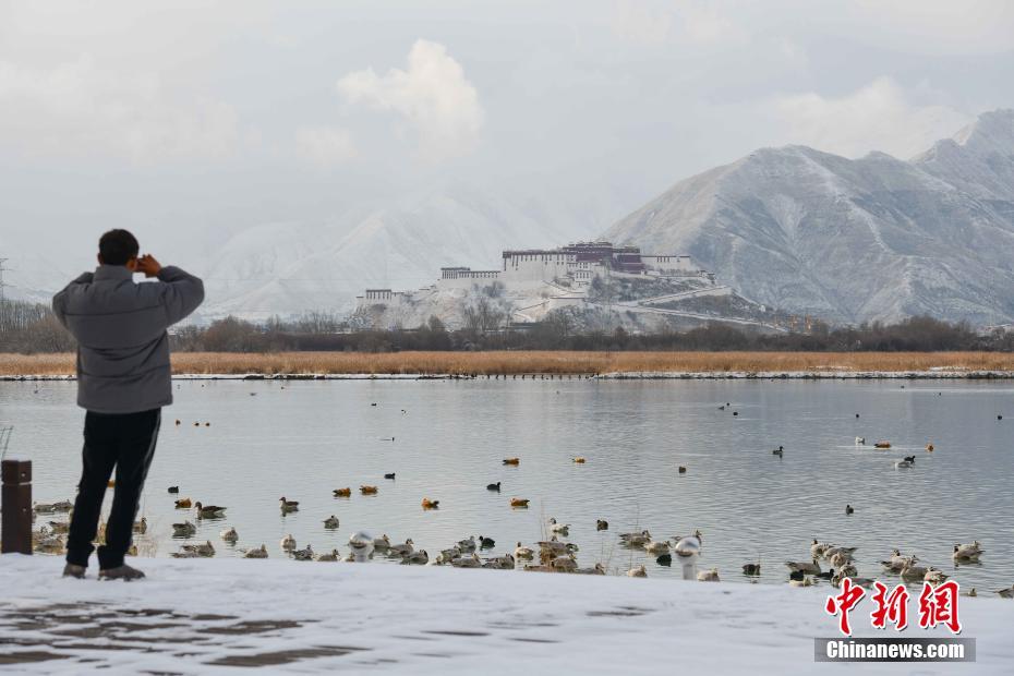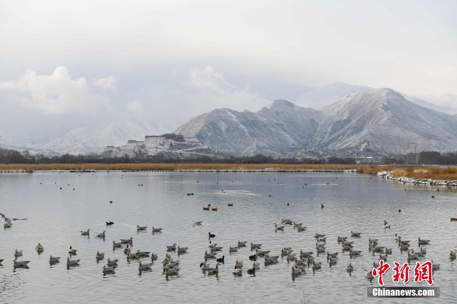 2月21日,從(cong) 拉魯濕地遠眺布達拉宮。當日,西藏拉薩市迎來降雪,雪後的拉薩城區和周圍群山白雪皚皚,風景如畫。 中新社記者 貢嘎來鬆 攝