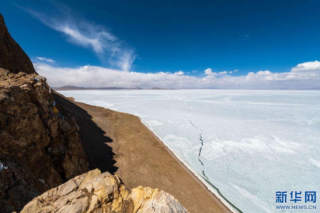 西藏“聖湖”入春 半湖冰雪半湖濤
