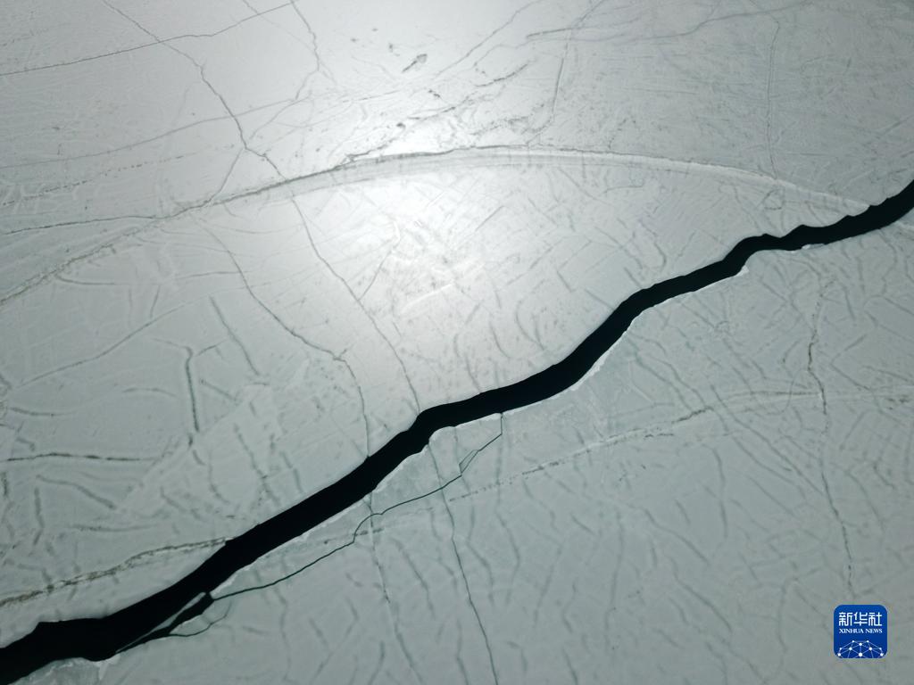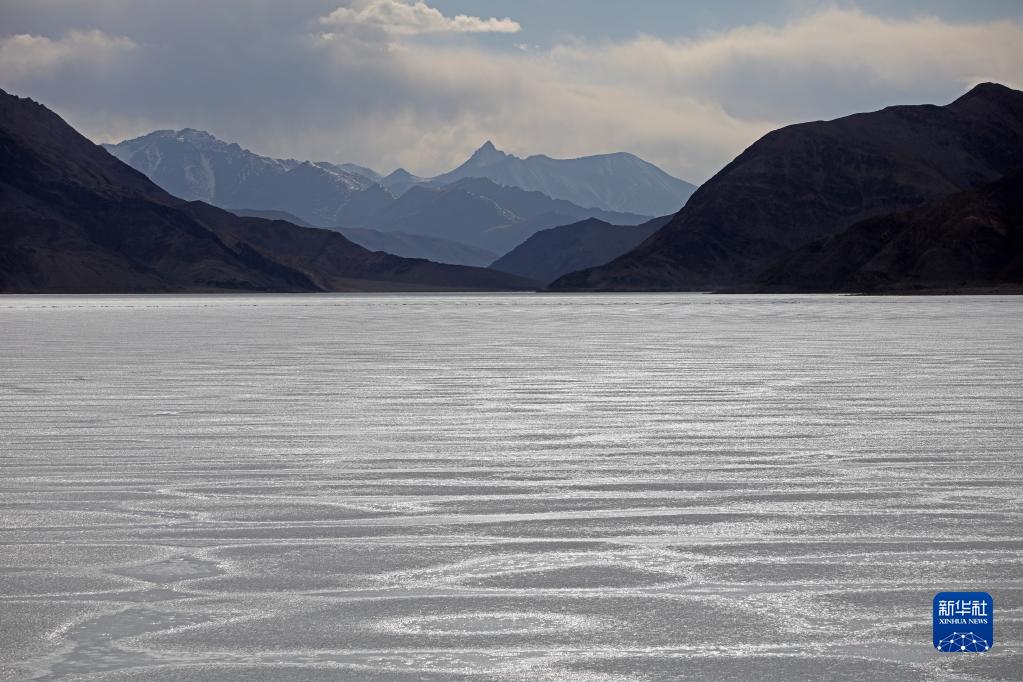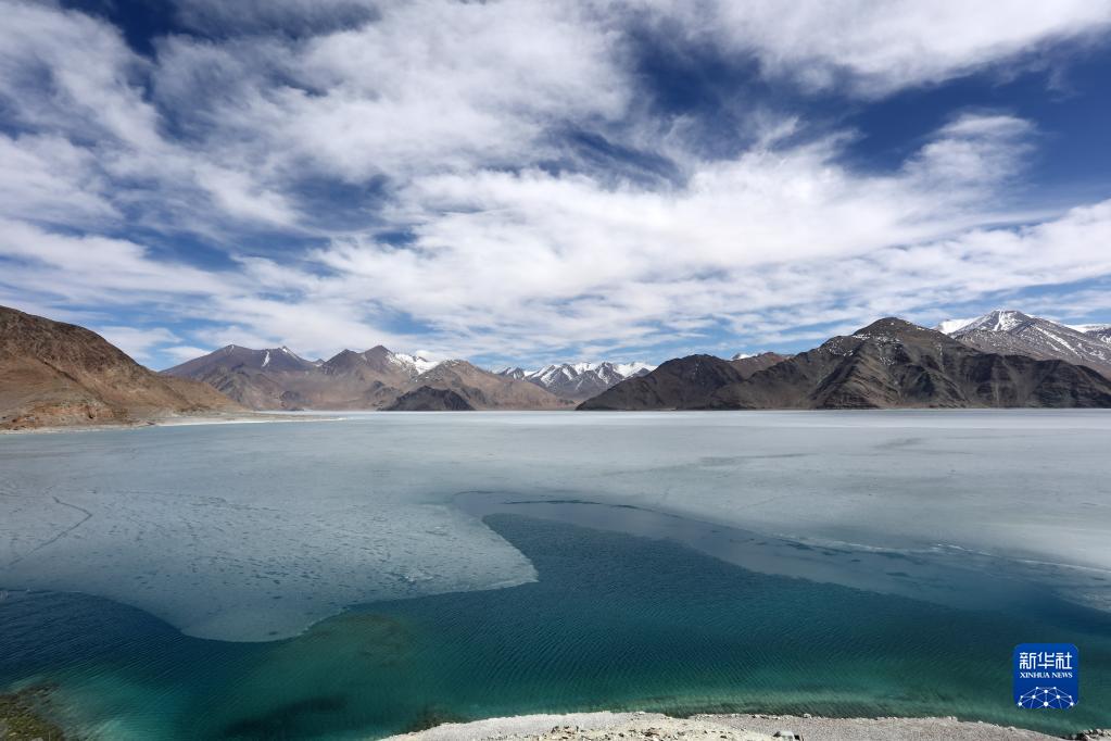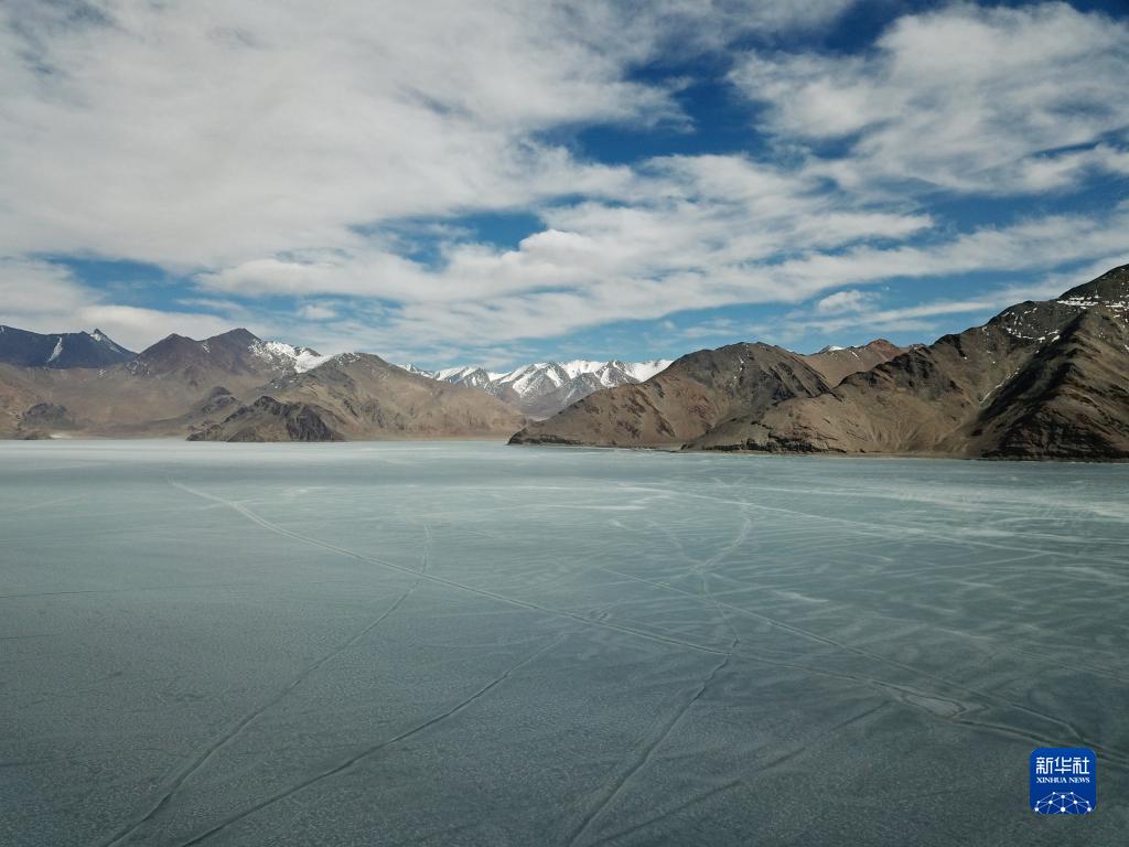 這是4月9日拍攝的班公湖冰麵。由於(yu) 湖體(ti) 狹長,部分湖麵仍未解凍。新華社記者 薑帆 攝