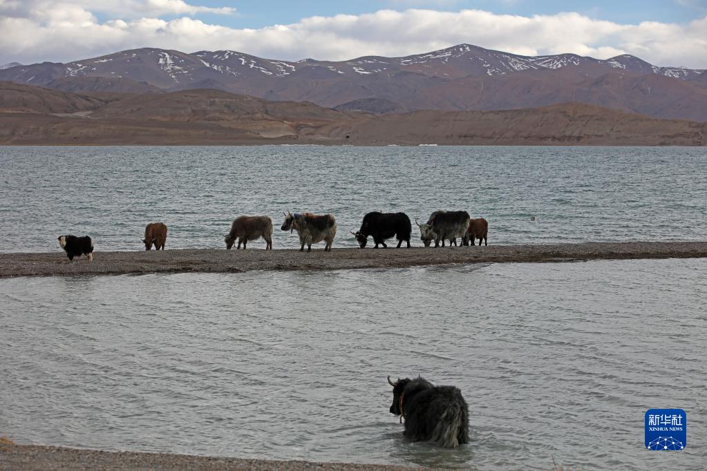 這是4月9日在班公湖畔拍攝的犛牛。新華社記者 薑帆 攝