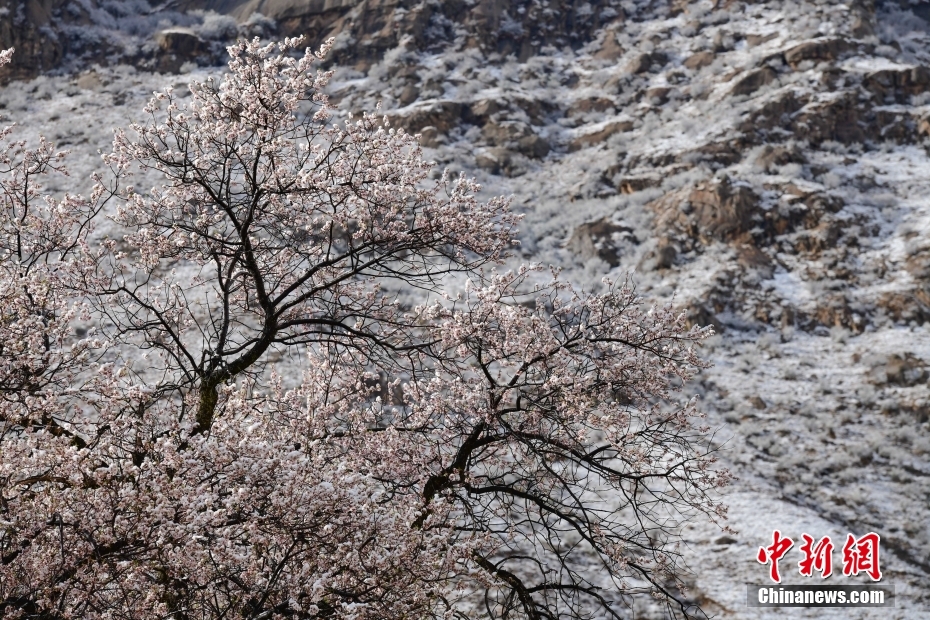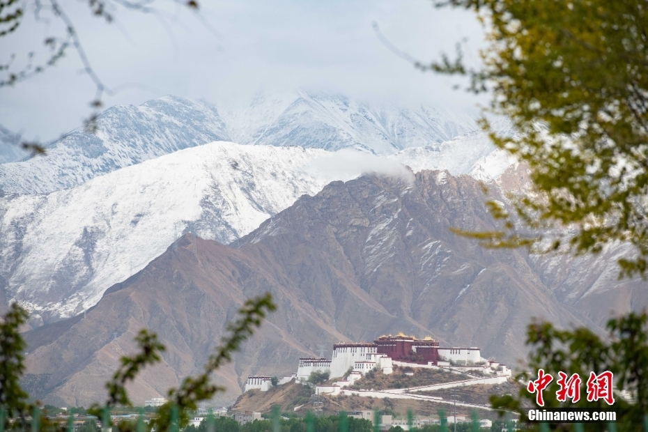 4月17日,拉薩迎來春雪。雪後,古城拉薩周邊被白雪覆蓋,景色宜人。 中新社記者 貢嘎來鬆 攝