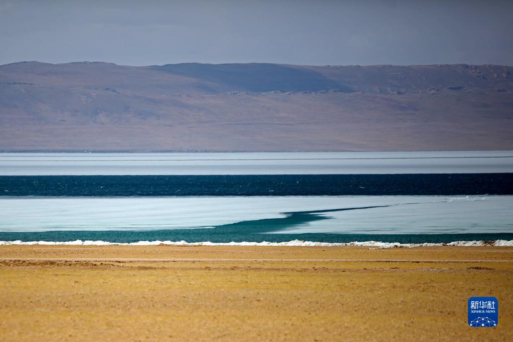 這是位於(yu) 西藏自治區阿裏地區改則縣的物瑪錯,湖水呈現出不同顏色(2022年4月12日攝)。新華社記者 薑帆 攝