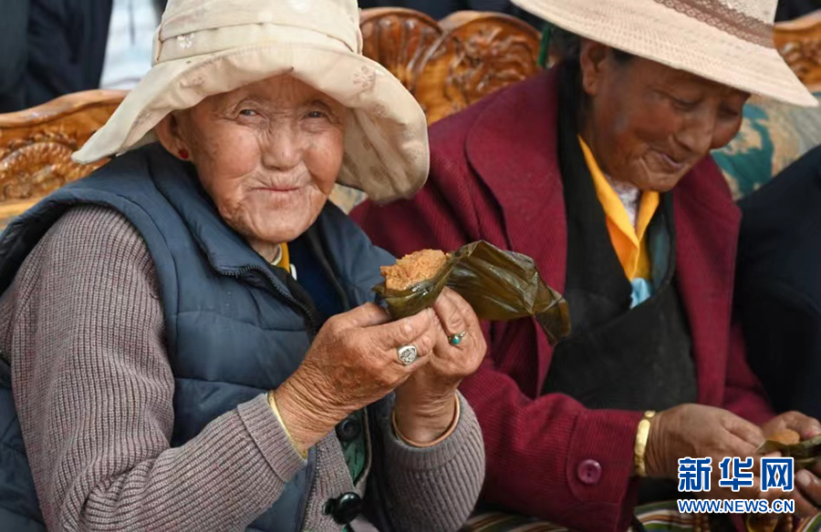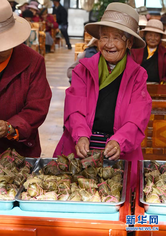 6月3日,西藏山南市集中供養(yang) 服務中心的老人們(men) 開心地領到千裏送來的粽子。新華網 王雷 攝