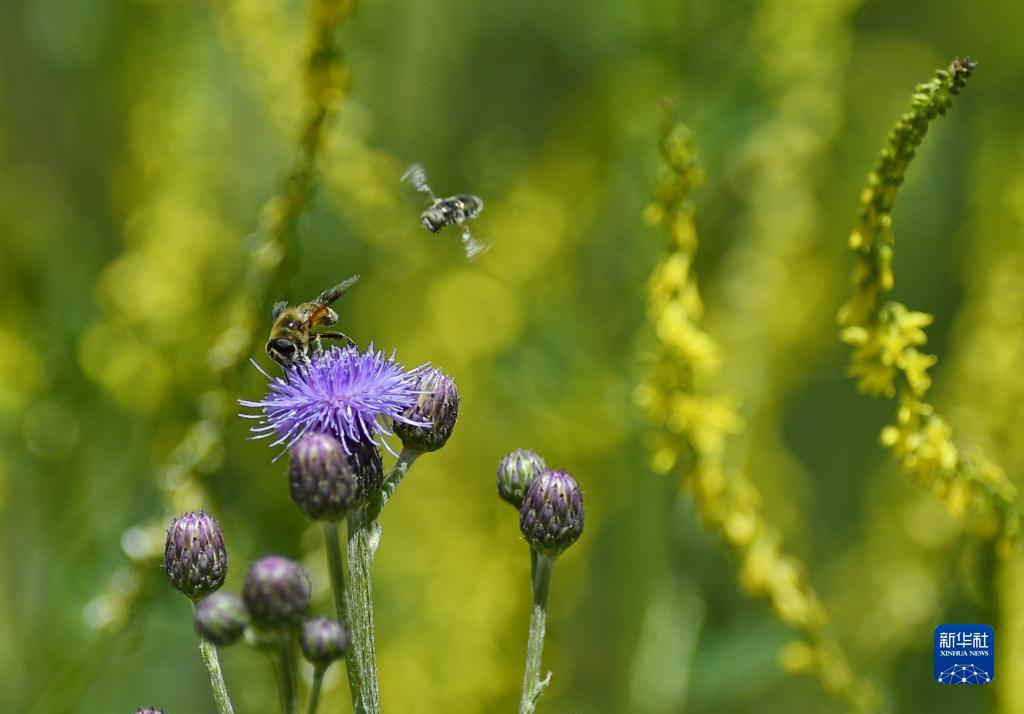 蜜蜂在拉魯濕地的花叢(cong) 間(6月21日攝)。新華社記者 張汝鋒 攝