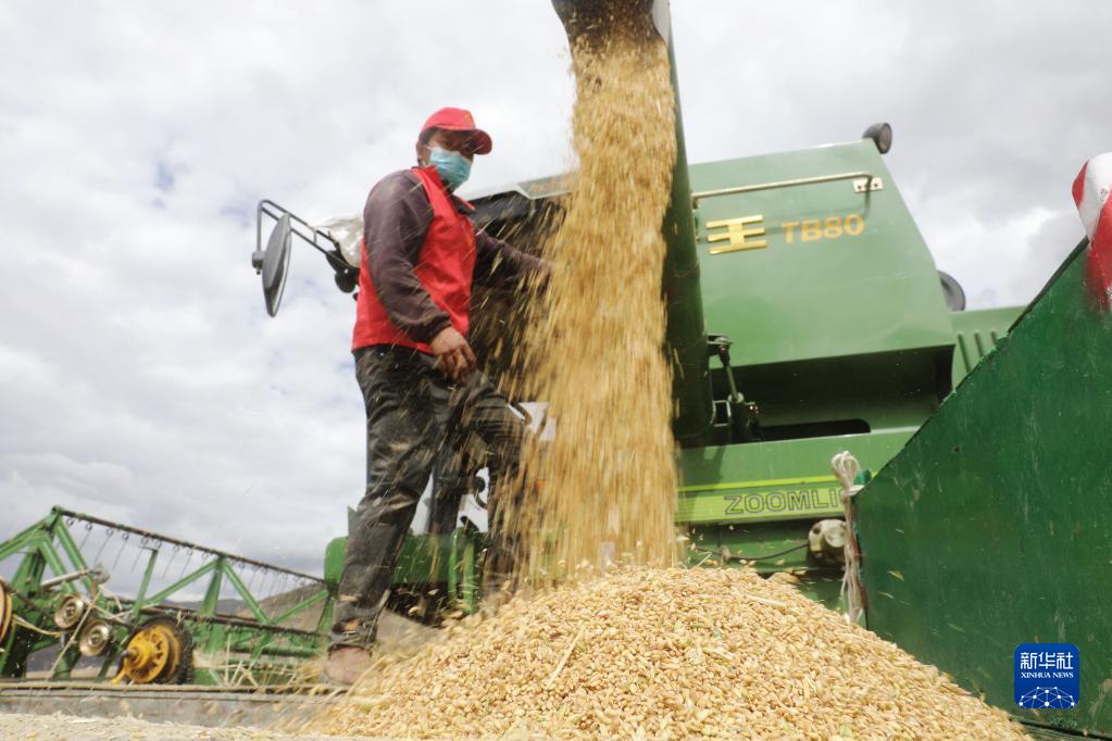 西藏拉薩市墨竹工卡縣唐加鄉(xiang) 農(nong) 民收獲青稞(8月27日攝)。新華社發(洛克攝)