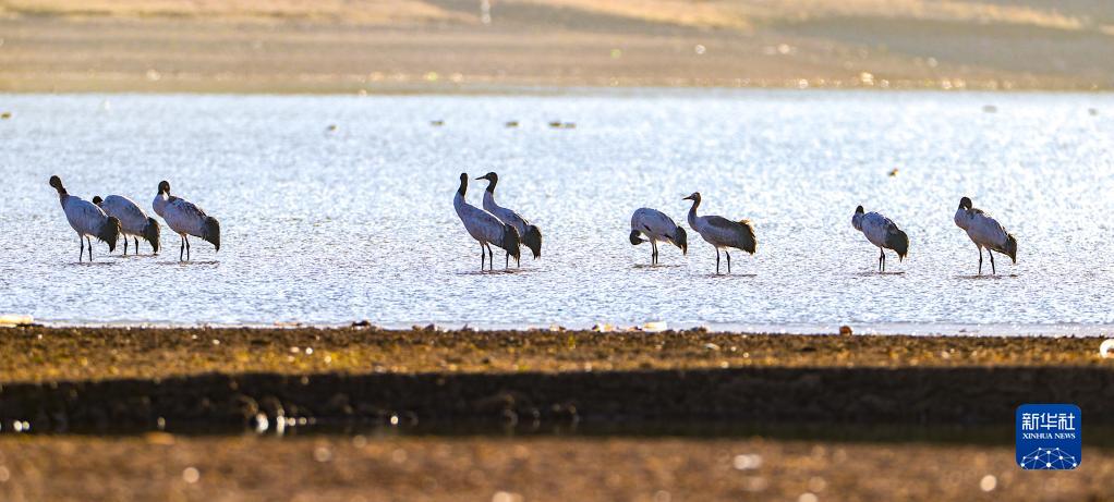 在林周縣虎頭山水庫拍攝的黑頸鶴(11月6日攝)。新華社記者 薑帆 攝