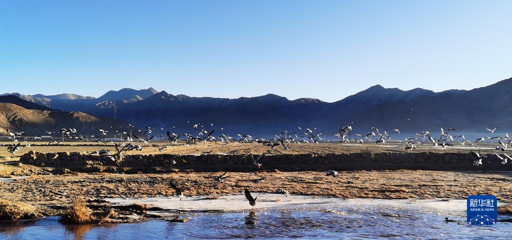 冬至過後,雪域高原進入一年中最寒冷的時段。在雅魯藏布江畔、拉薩河穀、高原湖泊和廣袤的田野裏,大批越冬的候鳥自由自在覓食、翱翔,黑頸鶴、斑頭雁、赤麻鴨等候鳥的叫聲此起彼伏,在寒冬裏奏響和諧生態交響曲。