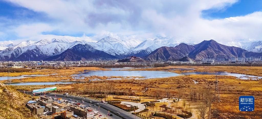 越過拉魯濕地眺望布達拉宮(2月24日攝,手機照片)。新華社記者 沈虹冰 攝