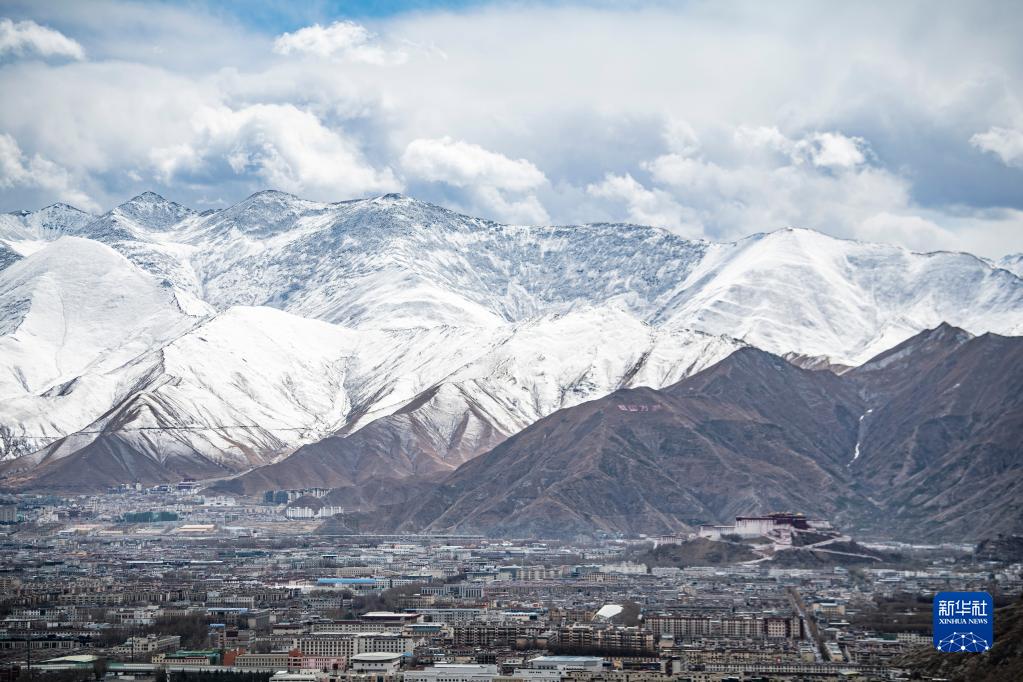 2月24日,西藏拉薩迎來降雪天氣,城區南北的群山被白雪覆蓋,分外迷人。