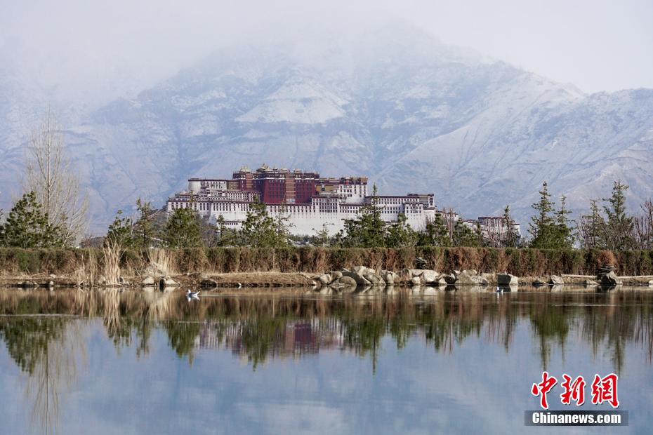 2月26日至27日,海拔3600多米的高原古城拉薩再次迎來降雪天氣,拉薩河兩(liang) 岸延綿的山體(ti) 猶如披上了一層白紗,一派高原特色城市風光,景色秀麗(li) 。布達拉宮觀景台、拉薩南山公園等地吸引了不少旅遊攝影愛好者“打卡”古城雪景。圖為(wei) 從(cong) 拉薩南山公園遠眺布達拉宮與(yu) 遠處的雪山。