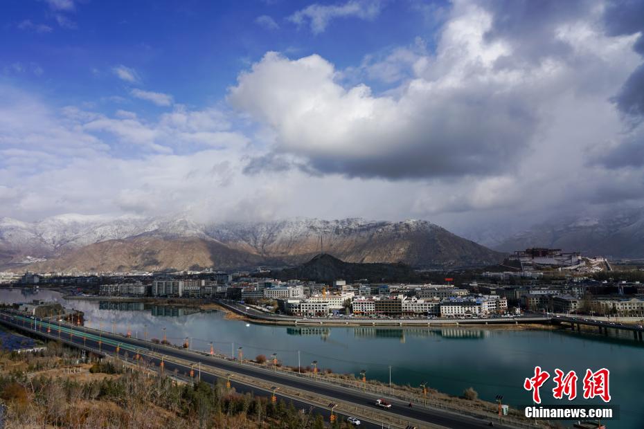 2月26日至27日,海拔3600多米的高原古城拉薩再次迎來降雪天氣,拉薩河兩(liang) 岸延綿的山體(ti) 猶如披上了一層白紗,一派高原特色城市風光,景色秀麗(li) 。布達拉宮觀景台、拉薩南山公園等地吸引了不少旅遊攝影愛好者“打卡”古城雪景。圖為(wei) 雪後拉薩城市風光。